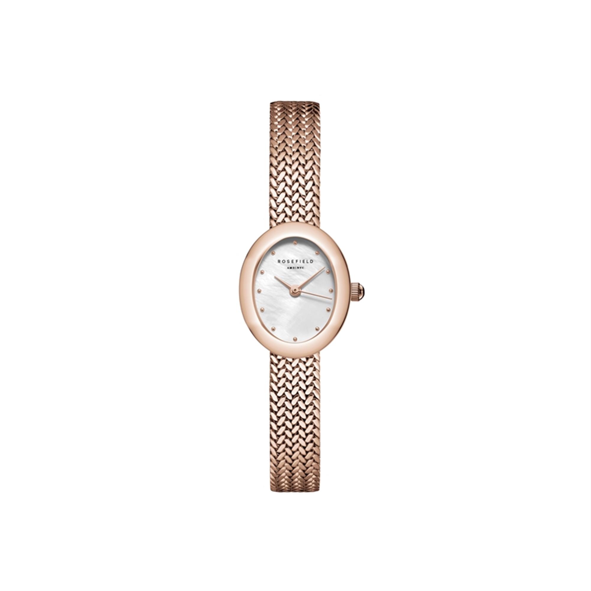 Gør et statement med Rosefield Mini Oval Rosa Forgyldt Dameur, hvor klassisk design møder moderne funktionaliteter. Det er det perfekte valg for den moderne kvinde, der værdsætter skønhed og kvalitet i hver detalje.